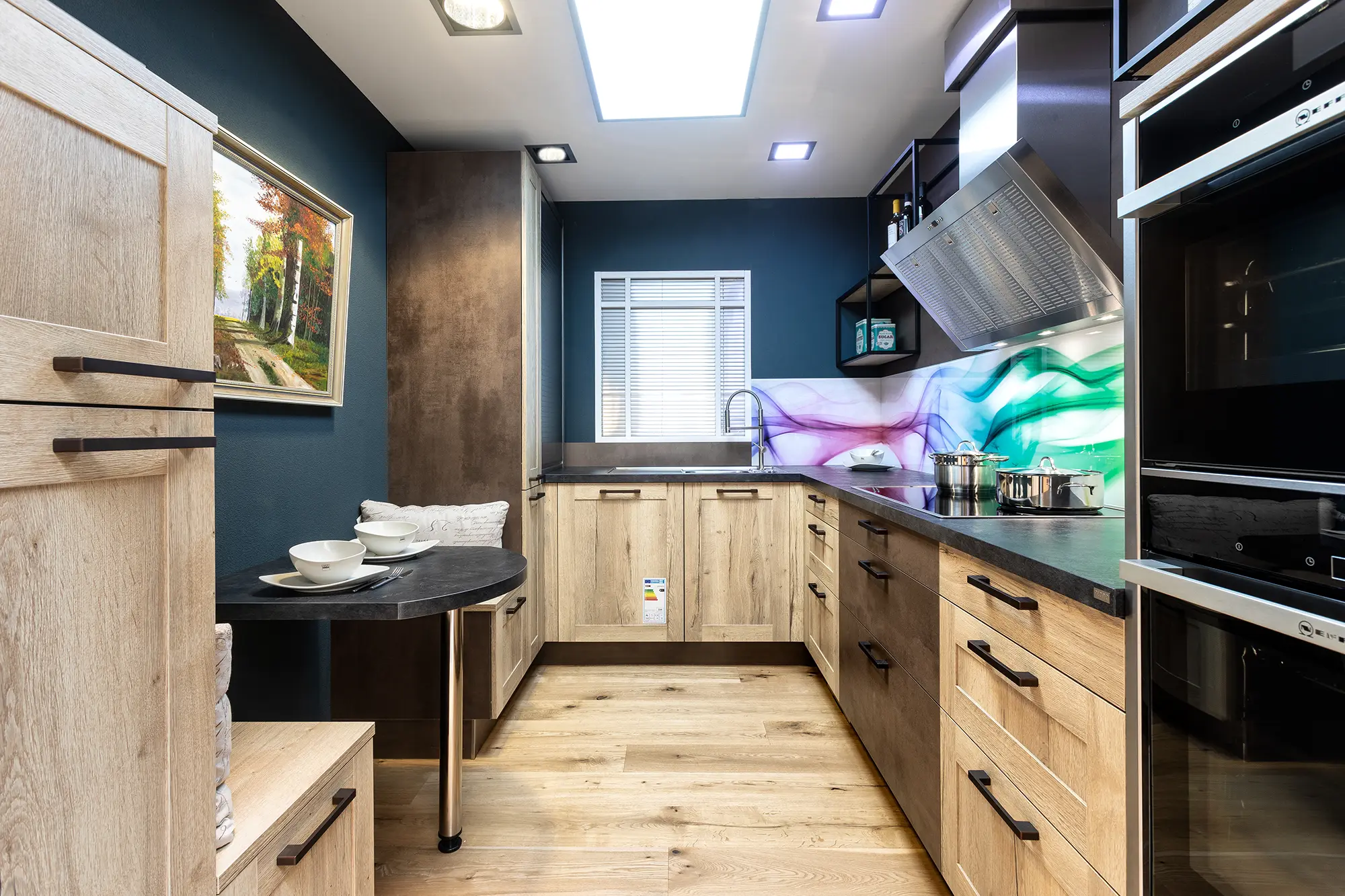 Ein Schwarzwälder Klassiker trifft auf das klare Design einer modernen Küche – ein harmonisches Zusammenspiel von zeitgemäßem Wohnstil und Herkunft.